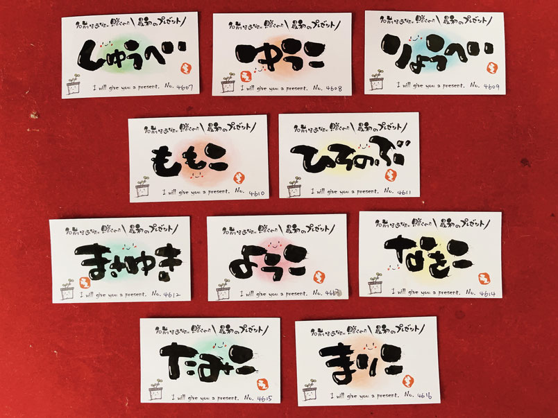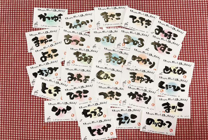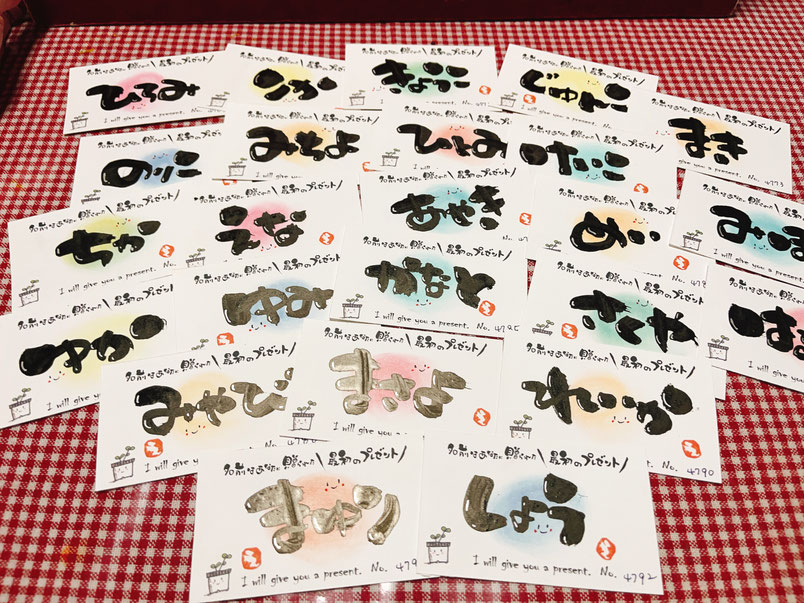現在私は2019年からお名前プレゼント1万人に描こうと決めて、現在6年目6200人の方にプレゼントしています。